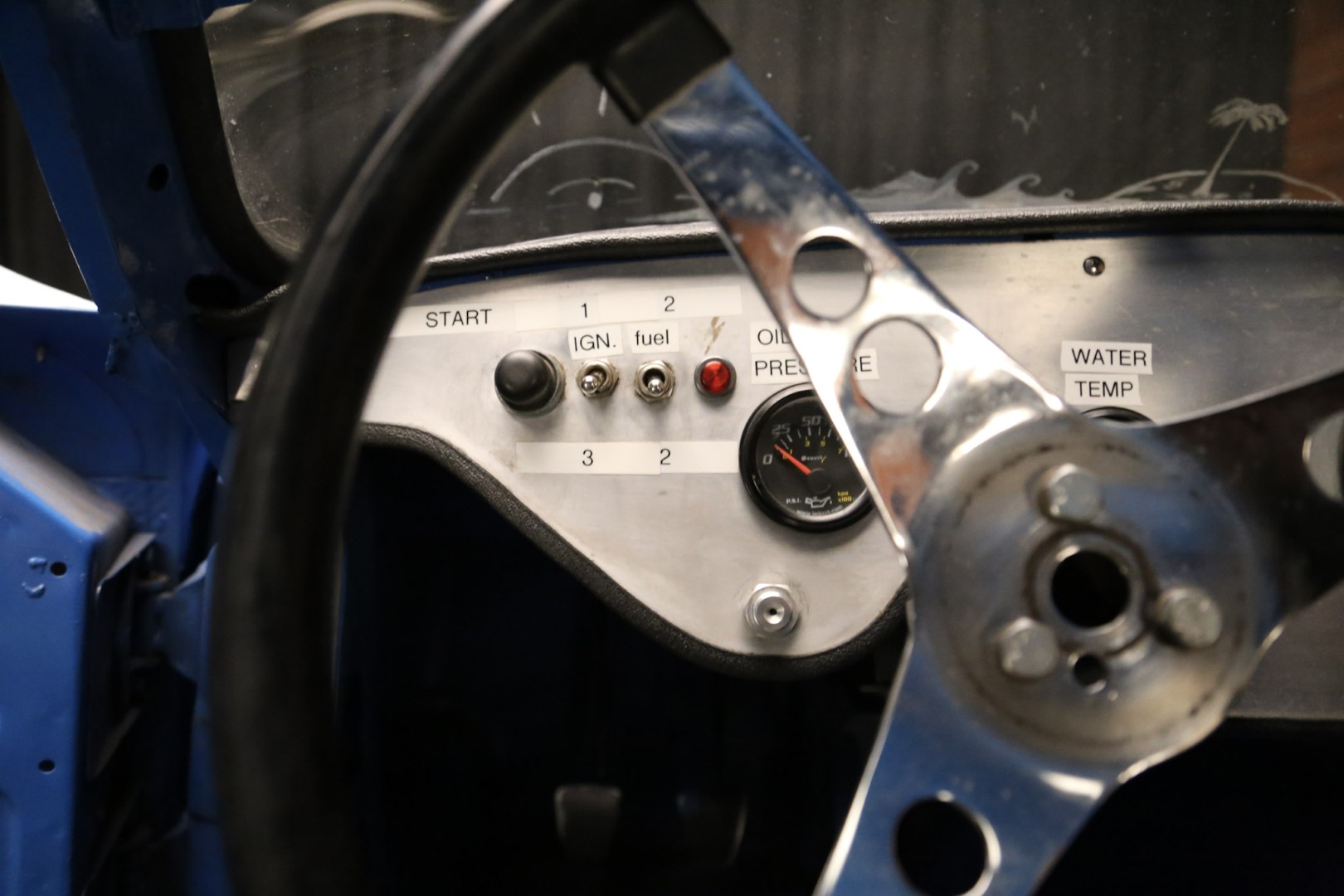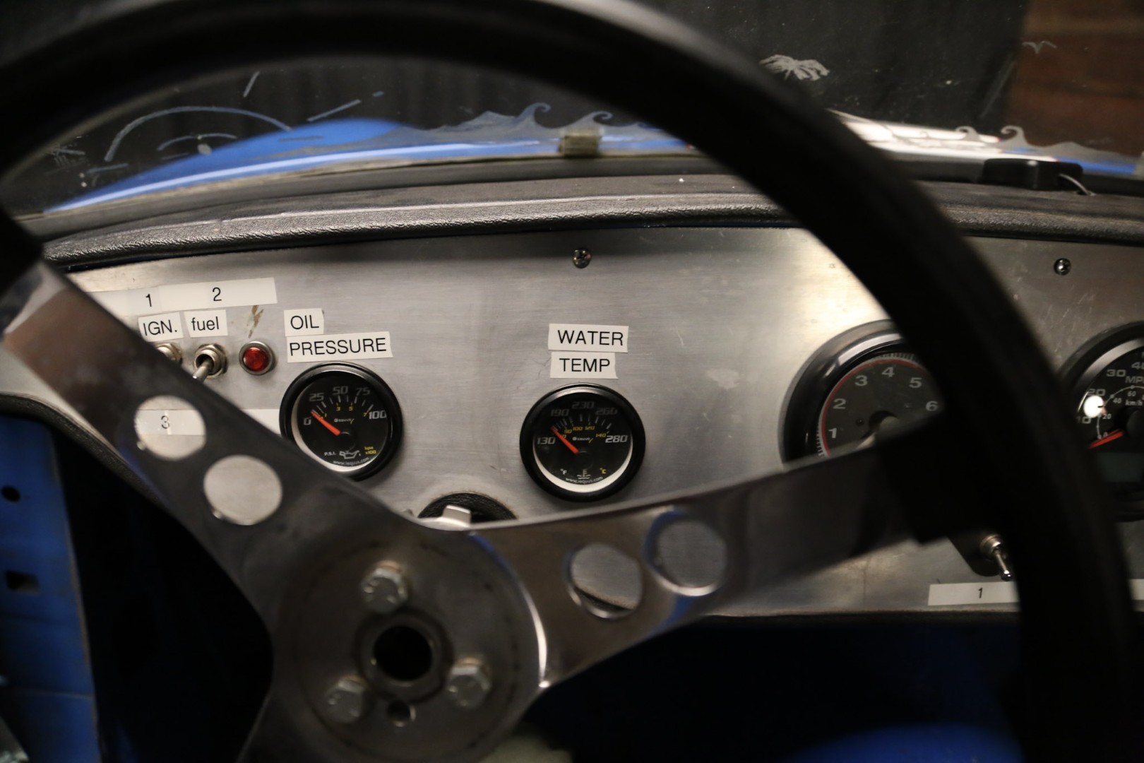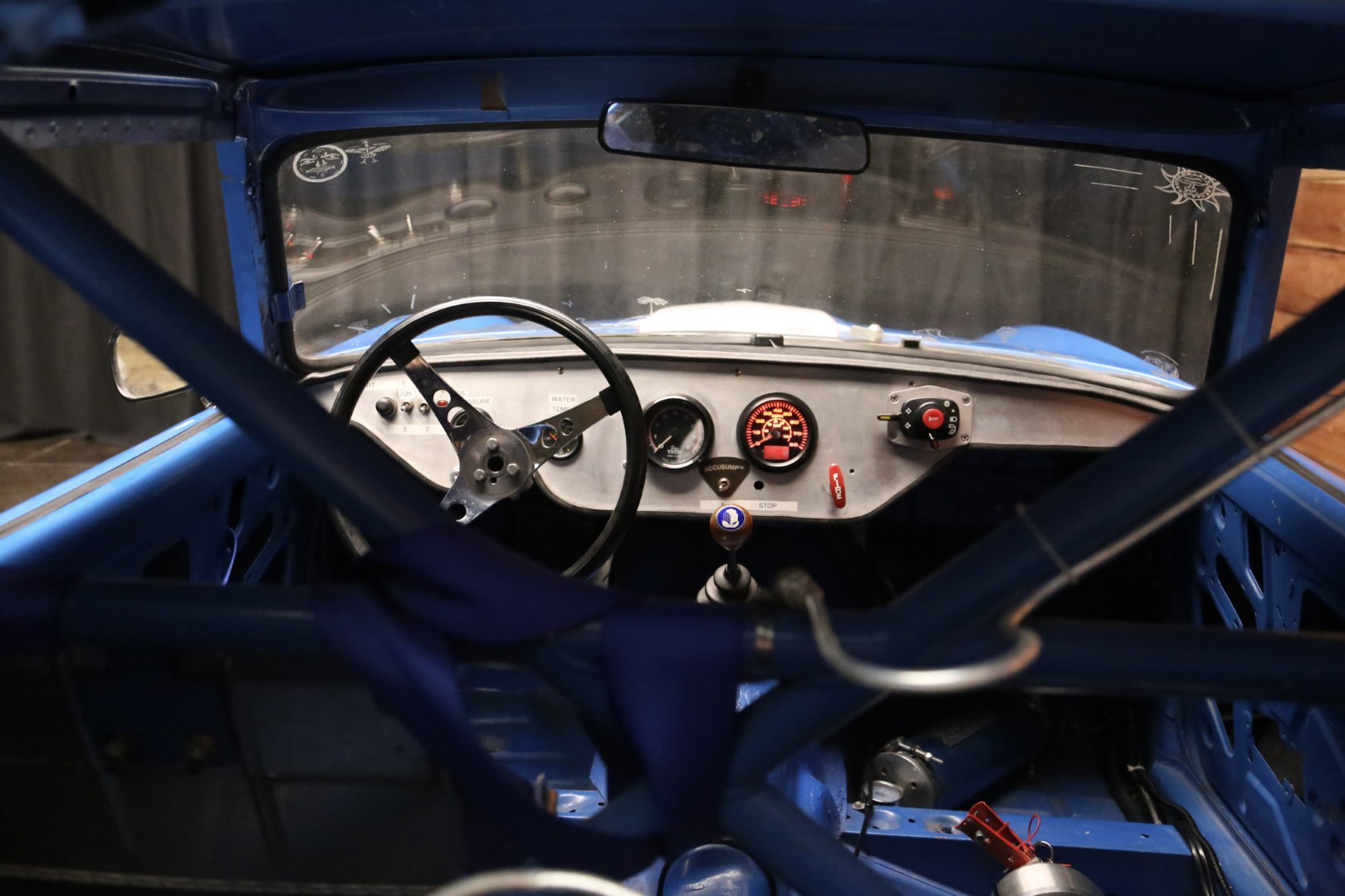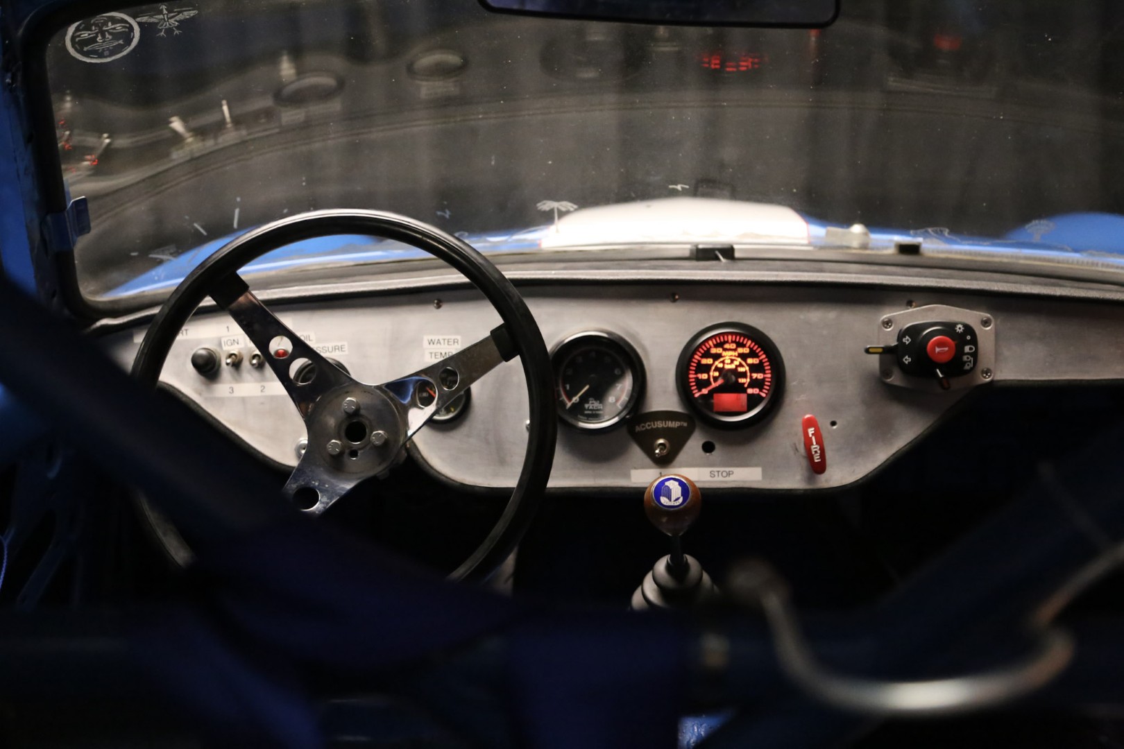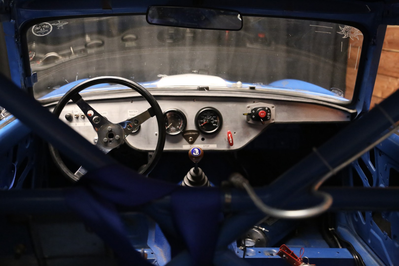 A brand-new fire suppression system is installed, with the suppression tank currently occupying the passenger seating area—this would need relocation if a passenger seat were added. The Accusump system occupies part of the passenger footwell but can also be relocated if desired. Five-point racing harnesses are installed and valid through 2025.