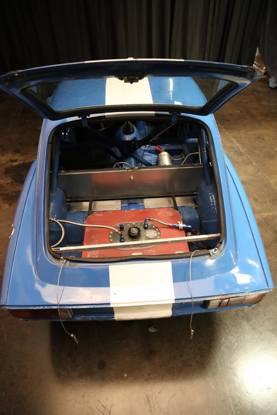 The car sits one inch lower in the rear, with front coilover shocks and suspension retaining straps, and adjustable shocks in the rear. High-strength aluminum spindles and an extremely stiff, bulletproof front sway bar deliver precise handling. Stopping power comes from slotted front disc brakes.