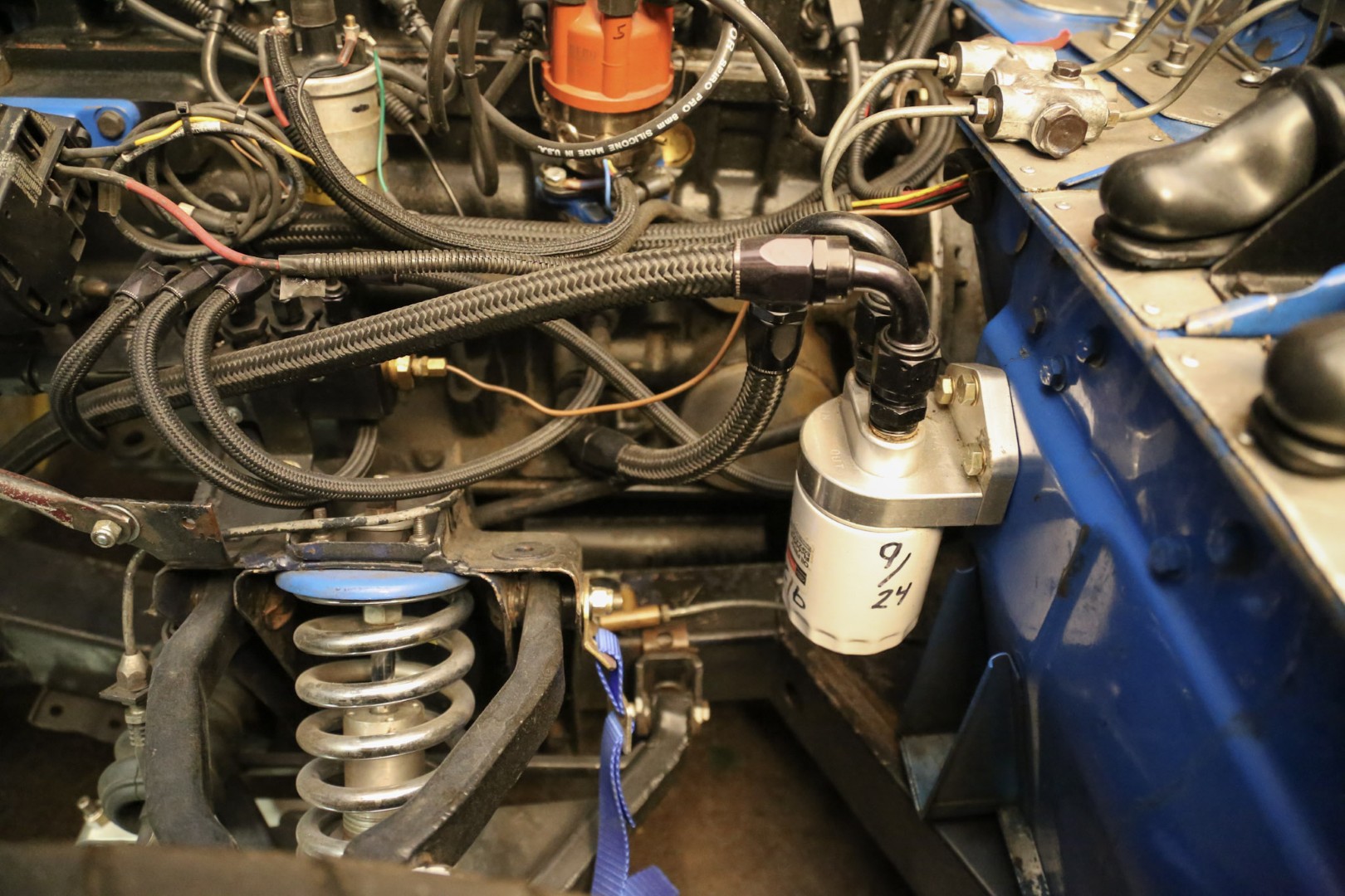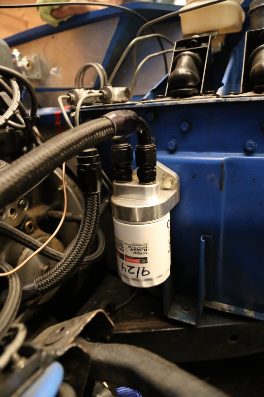 - Accusump, oil cooler, remote oil filter