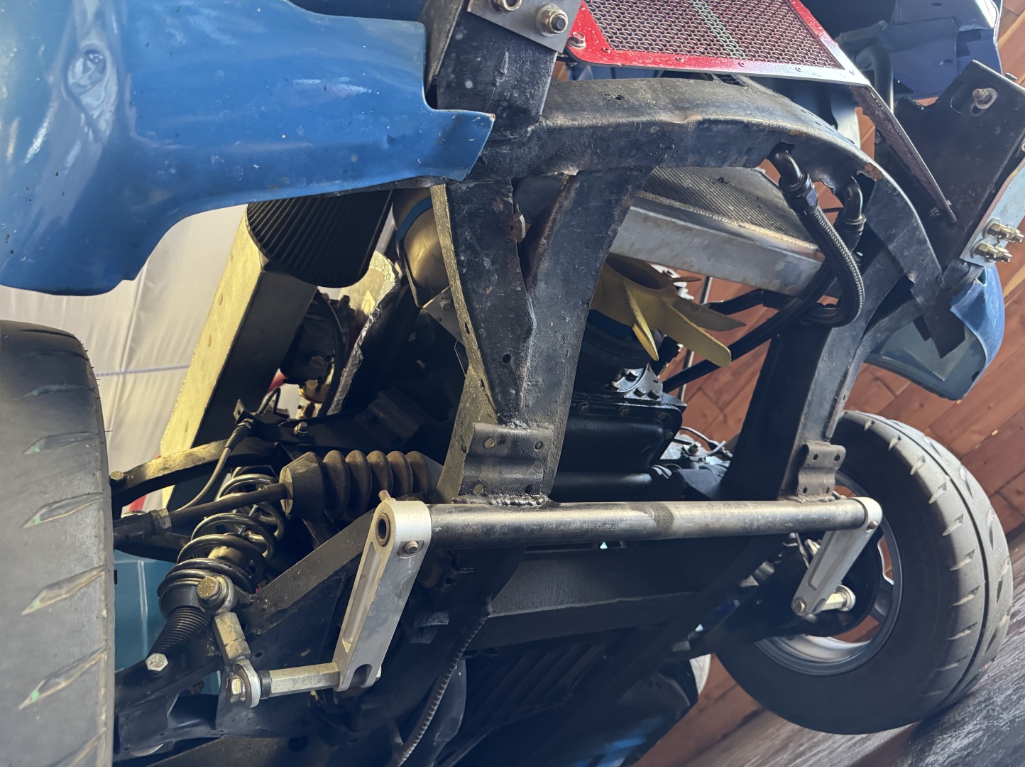 - Front coilovers with suspension straps, adjustable rear shocks