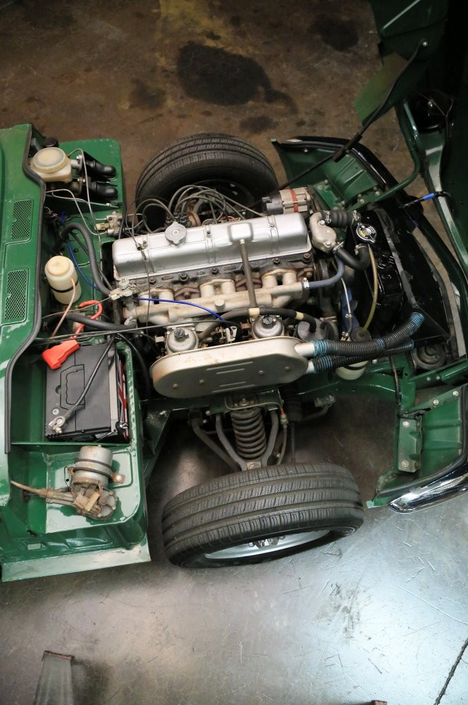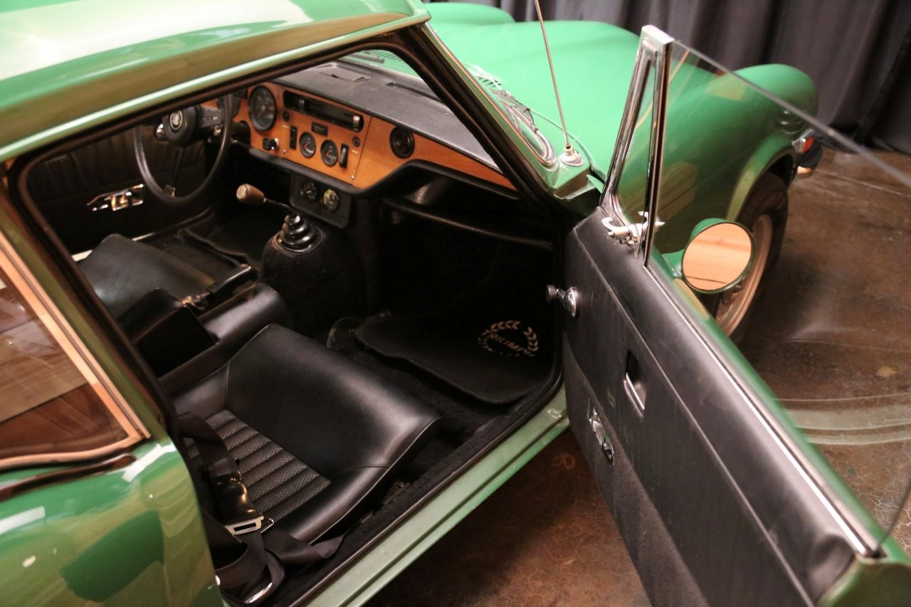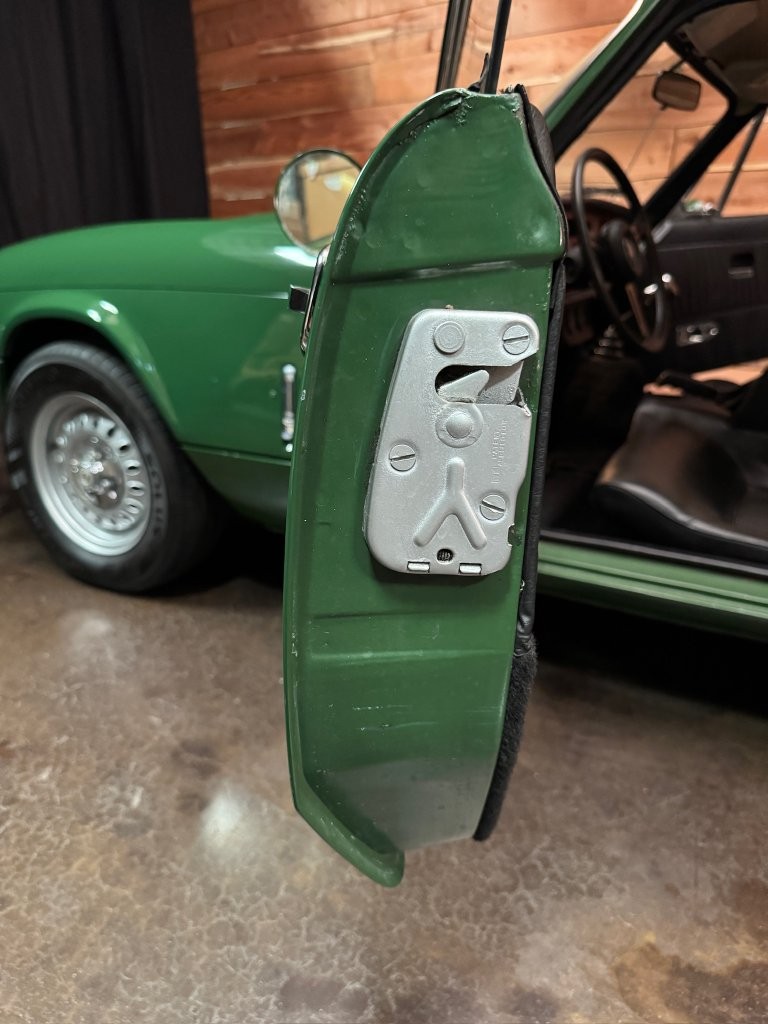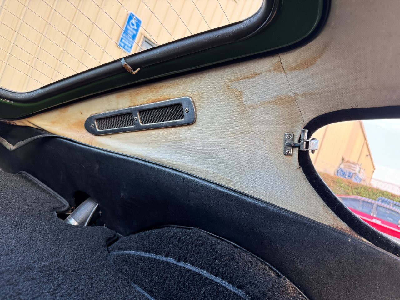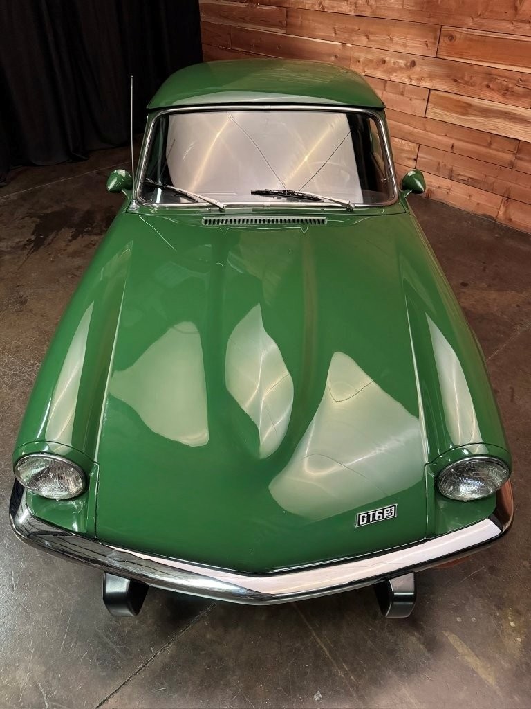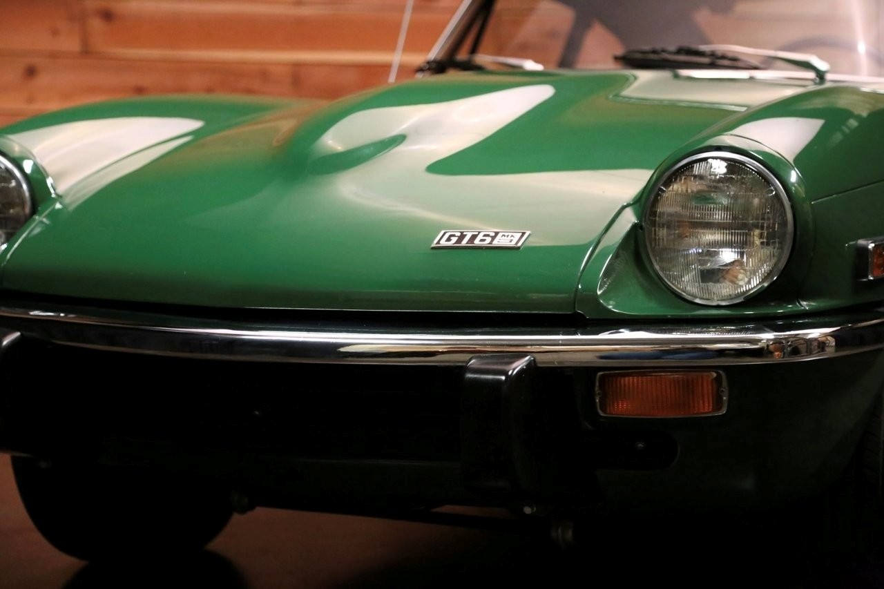 Cosmetically, the GT6 presents well as a driver. The body was professionally repainted during the restoration and still shows nicely, with a consistent finish and good shine. However, there are some paint chips and scratches throughout the exterior (see images). The interior is also in good, usable condition with some wear spots and blemishes consistent with age. The dash wood veneer shows some patina and cracking. There is some staining on the rear headliner (see images), but the overall presentation remains tidy and very approachable.