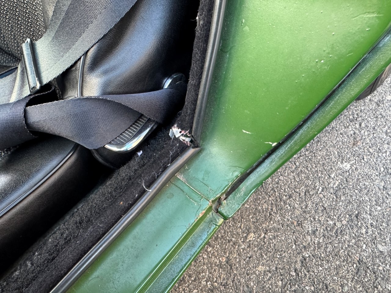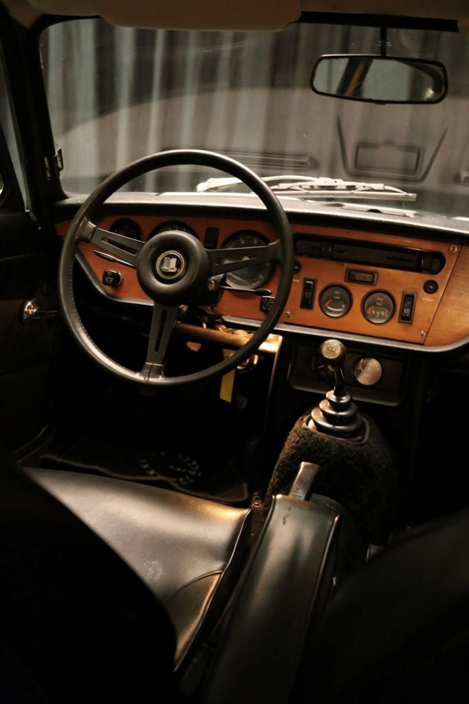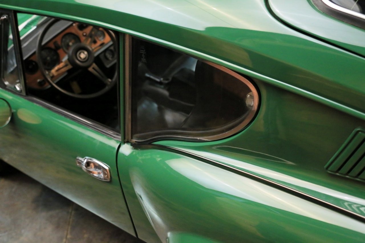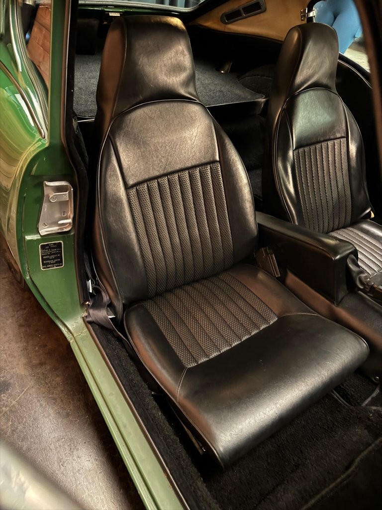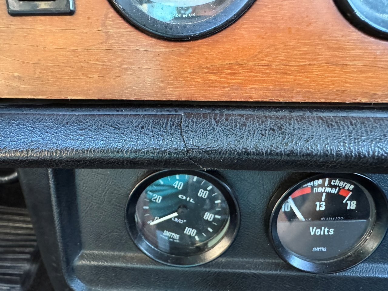 Cosmetically, the GT6 presents well as a driver. The body was professionally repainted during the restoration and still shows nicely, with a consistent finish and good shine. However, there are some paint chips and scratches throughout the exterior (see images). The interior is also in good, usable condition with some wear spots and blemishes consistent with age. The dash wood veneer shows some patina and cracking. There is some staining on the rear headliner (see images), but the overall presentation remains tidy and very approachable.