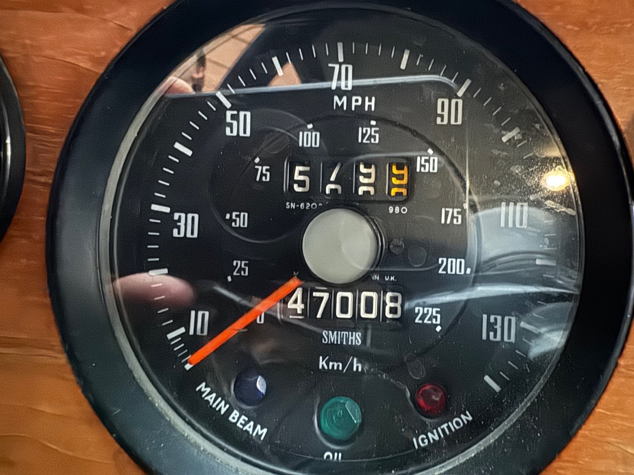 The engine starts instantly, runs smoothly, and holds healthy oil pressure. It’s well-tuned and responsive throughout the rev range. The 4-speed gearbox shifts confidently with no grinding or pop-out, and the clutch engages well and feels strong. The odometer shows a believed 47,008 miles, and all gauges are currently operational.