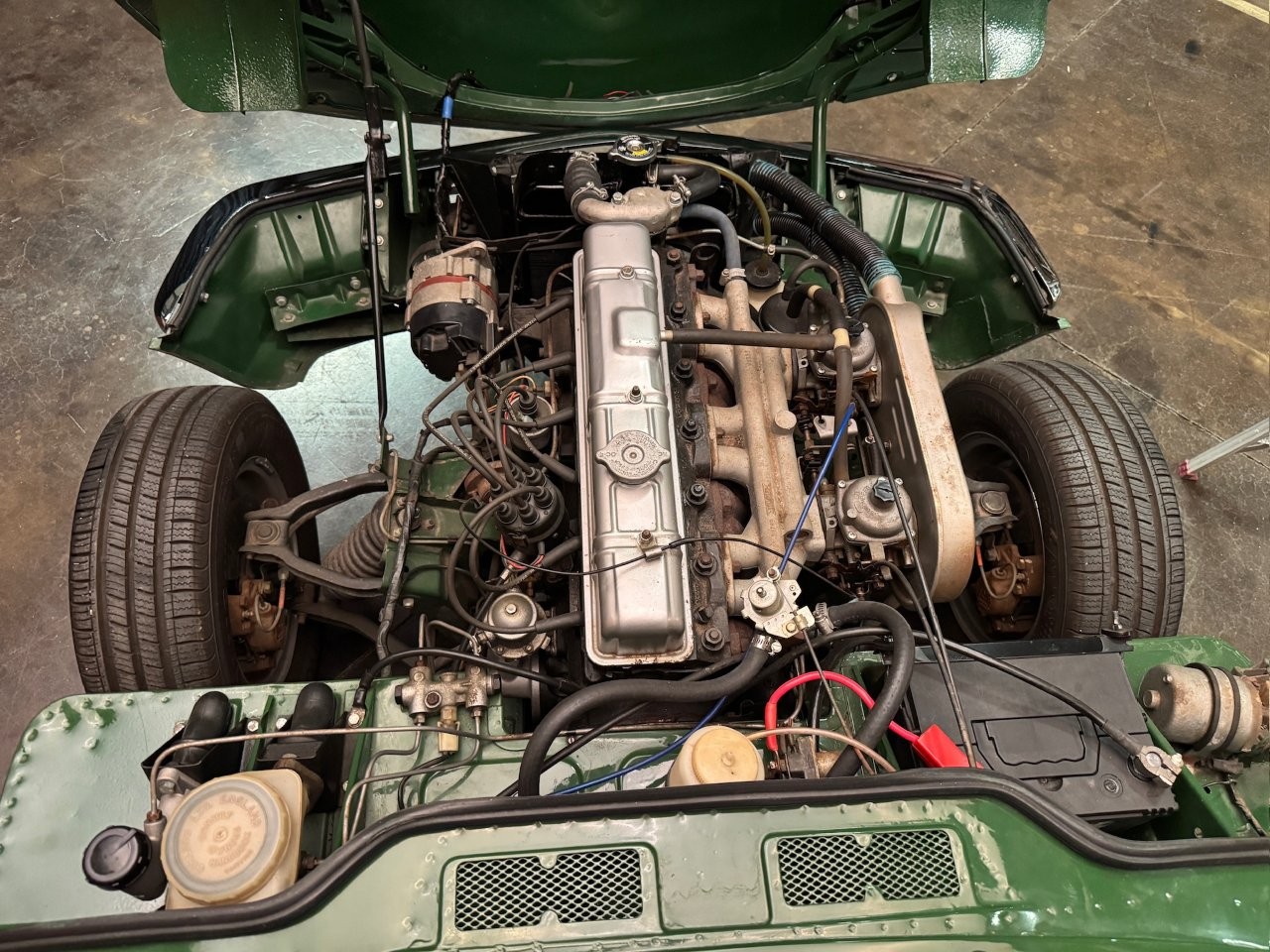 The engine bay is clean and very presentable. The suspension was rebuilt during the restoration, and handling remains tight and composed. Tires are in good condition, and the car has seen fewer than 500 miles since receiving new Rotoflex driveline couplings. There is a minor gear case drip, which is typical for these cars and not concerning for immediate use.
