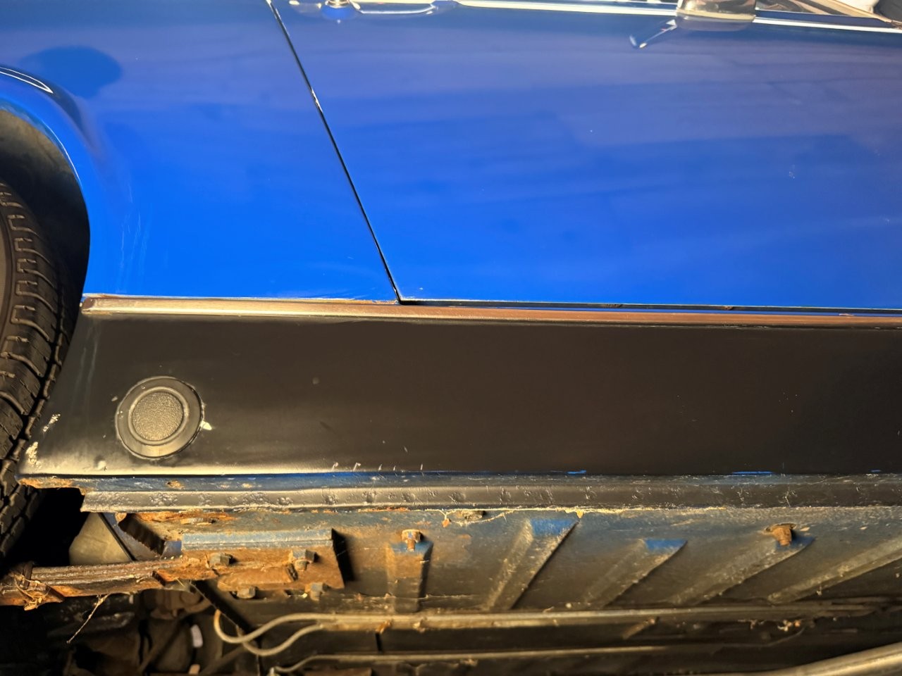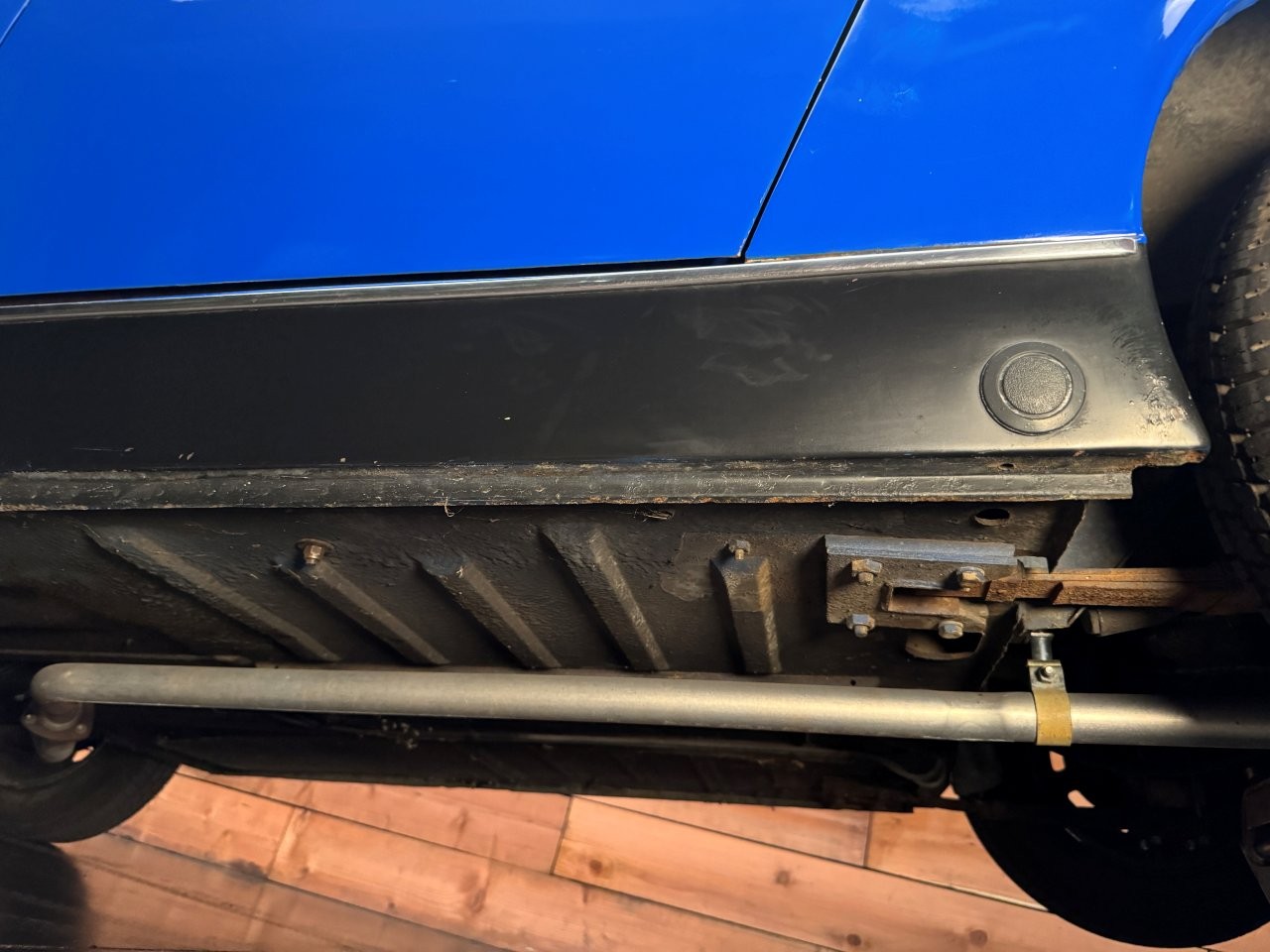 The paint and body are in good condition considering their age, presenting with an honest patina. Minor imperfections such as dings, chips, and scratches are present, but the car remains highly presentable overall. There are no signs of accident damage when inspecting the body panels or undercarriage. The structure is solid, with minor surface rust in typical locations like the suspension and undercarriage, and one small area of bubbling on the lower rocker (see images).